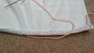 Then we want to start doing the blanket stitch (youtubetutorial found here) across the top of the towel. Make sure to continue to fold the very top